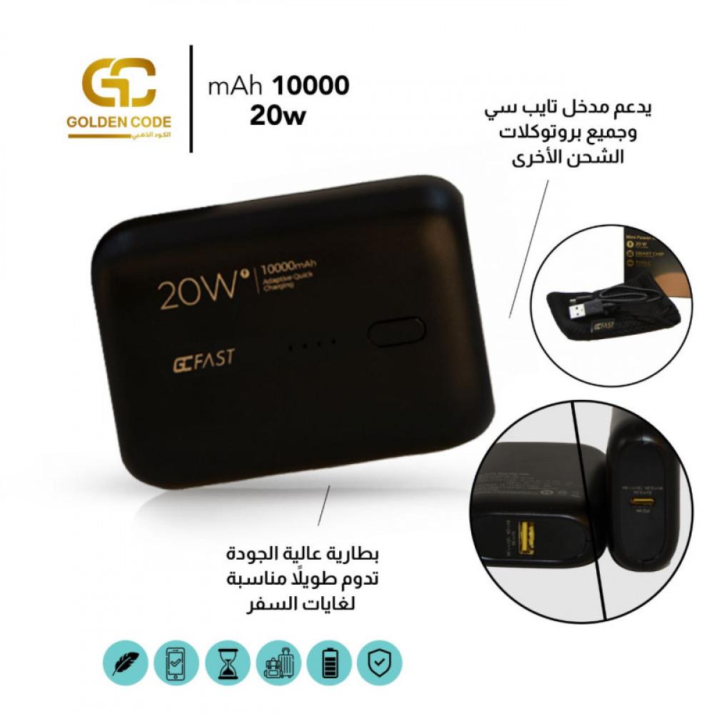 يتميز ببطارية ليثيوم عالية الجودة والأمان بقدرة 20 واط، وسعة 10,000 ملي أمبير. صغير الحجم ونحيف، وخفيف الوزن، و مناسب للسفر. يدعم جميع وصلات الشاحن، بما في ذلك مدخل تايب سي وجميع المدخلات الأخرى. بطاريته تدوم طويلًا وتأتي مع هدية سلك آيفون. خيار رائع لمن يحتاج إلى شحن أجهزته في أي وقت وأي مكان.