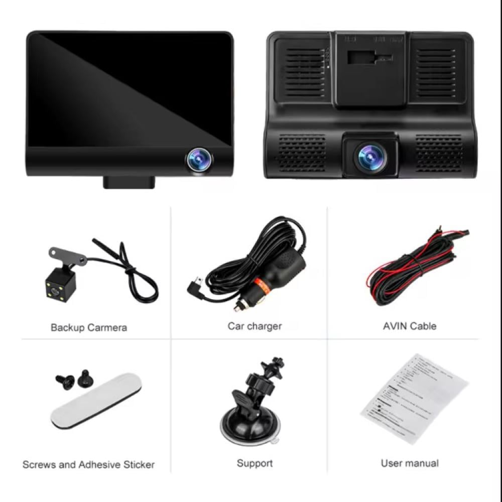 🚘 كاميرا السيارة الذكية ثلاثية العدسات – شاشة 4 إنش IPS